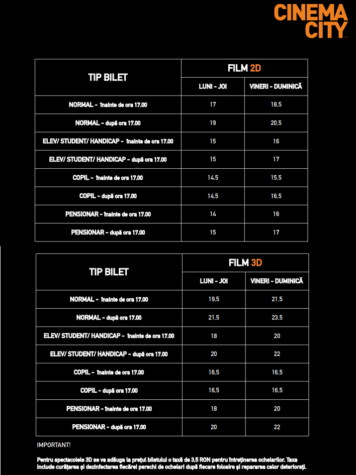 Iată și tarifele de intrare la Cinema City Baia Mare:
