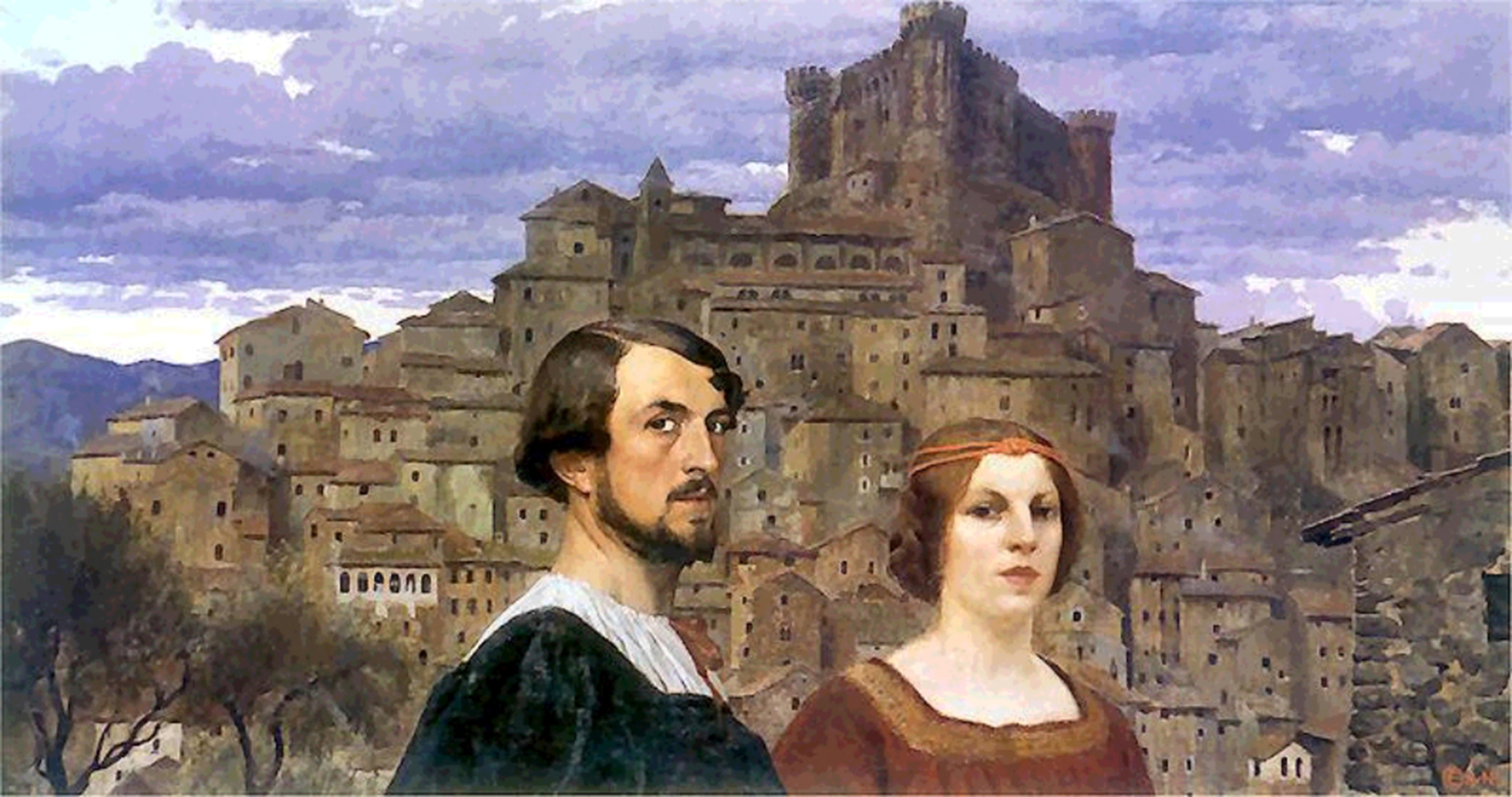 4 Okuń-Autoportret cu soția = Edward Okuń, Auroportret cu portretul soției – Zofia Tolkemit Okuń la Anticoli Corrado, 1900, ulei pe pânză, © Muzeum Mazowieckie w Płocku / Muzeul Regiunii Maz