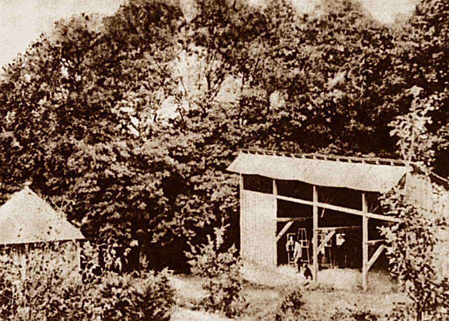 Ilustrația 1: Baia Mare, parcul orașului: Atelierul «Școlii Hollósy», (fotograf necunoscut) carte poștală de epocă, anii deceniului 1910 (?)