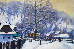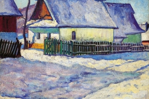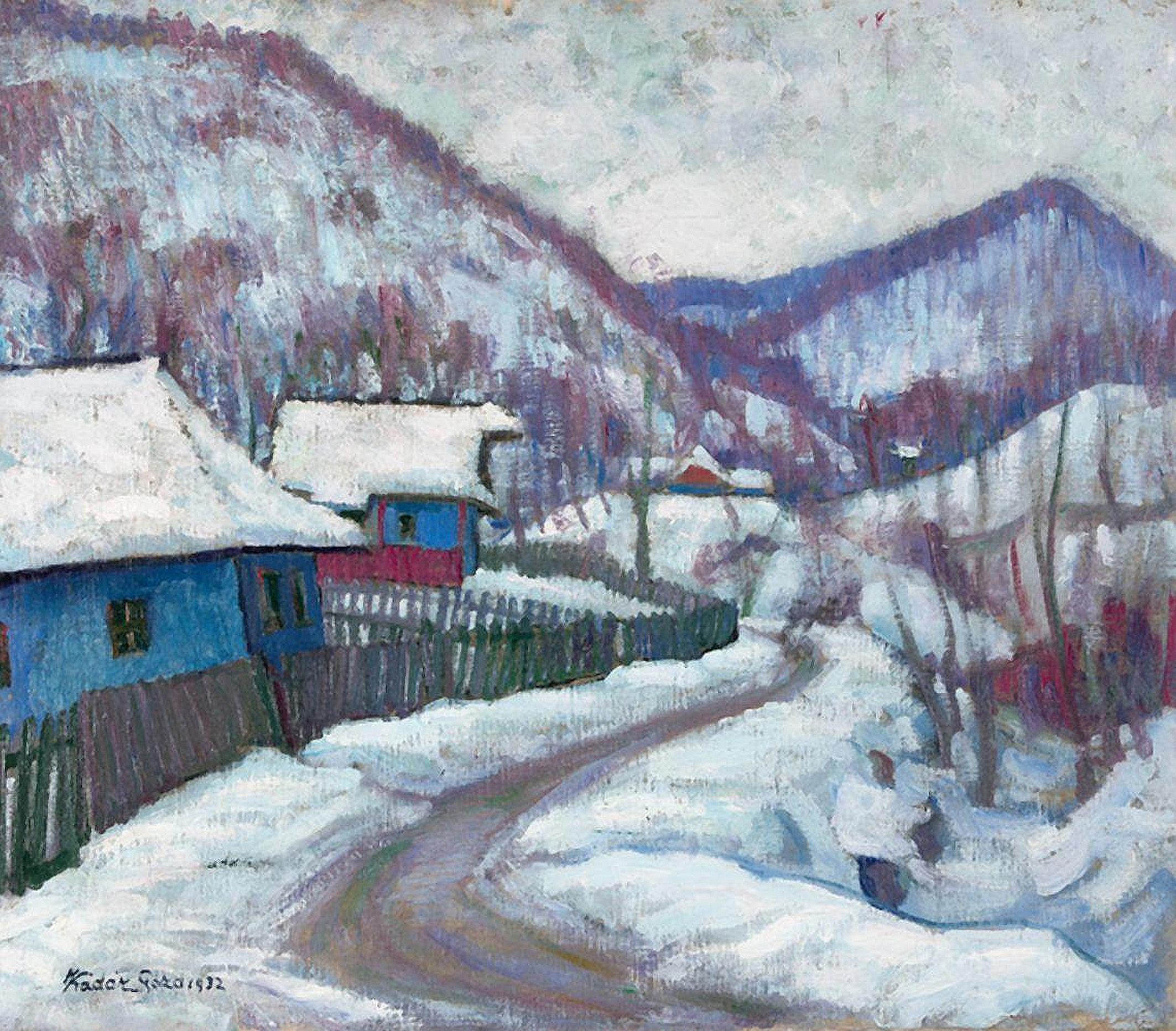 18 Kadar G Case din VR iarna 1932 = Géza Kádár (1878-1952), Case din Valea Roșie iarna, 1932, ulei pe pânză, 63 x 73 cm., colecție privată, Germania.