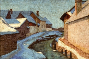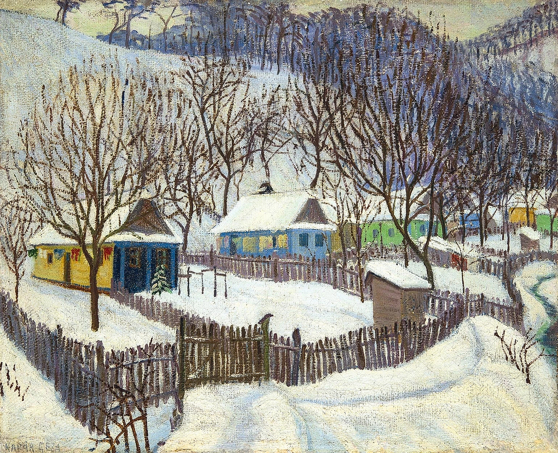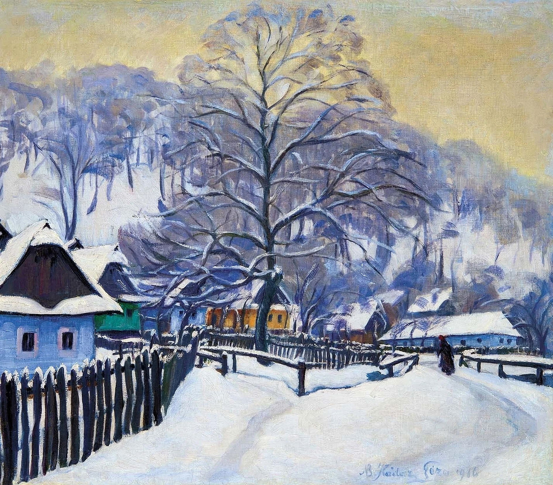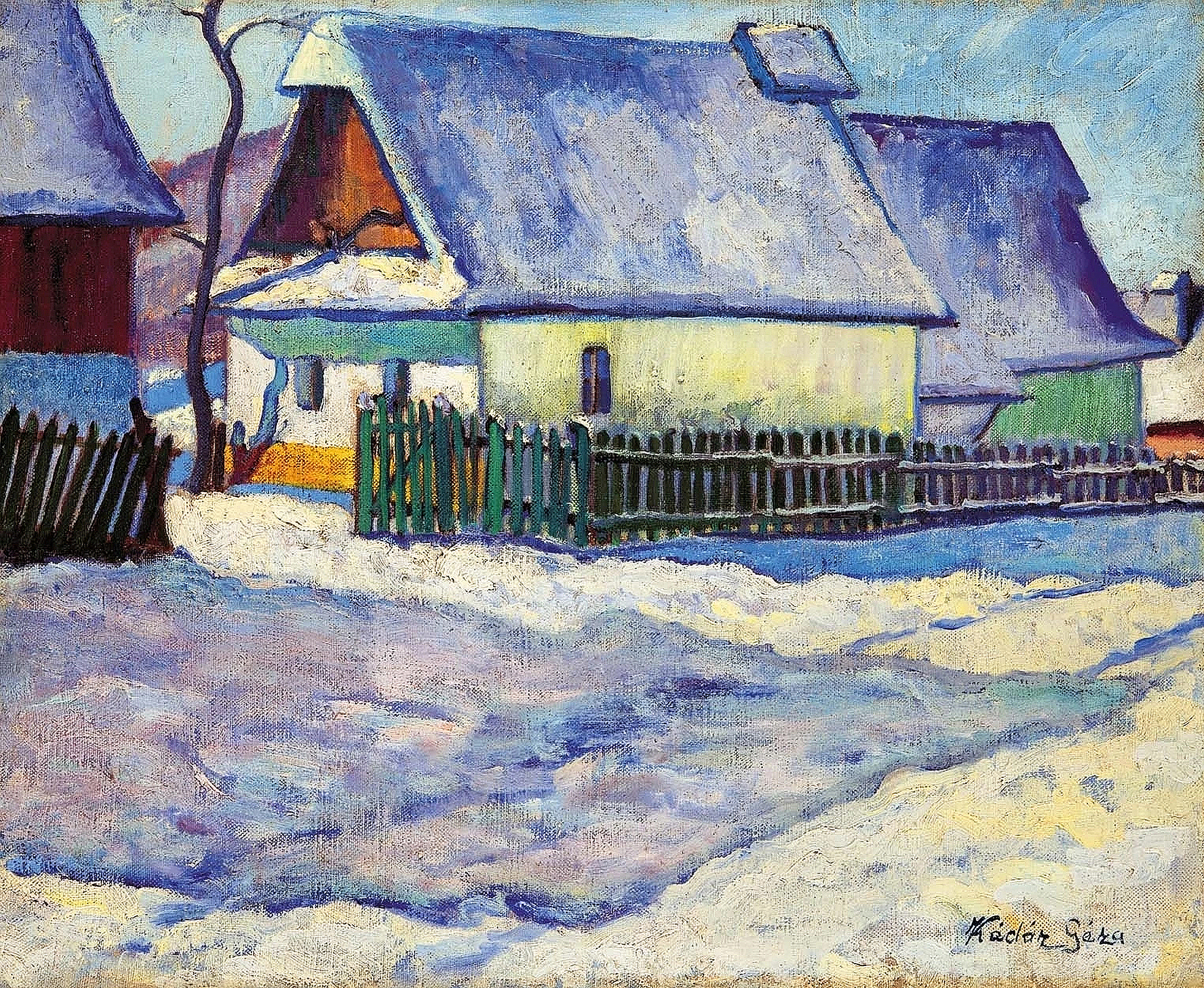 9 Kadar G Case cu grădini iarna pe VR 1910 = Géza Kádár (1878-1952), Case cu grădini iarna pe Valea Roșie, circa 1910, ulei pe pânză, 60,5 x 76 cm., colecție privată, Ungaria.