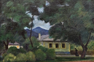 13 Szolnay S Peisaj baimarean 1923 = Sándor Szolnay (1893-1950), Peisaj băimărean [cu Valea Roșie], ulei pe pânză, 47,5 x 63 cm., Muzeul Județean de Artă «Centrul Artistic Baia Mare».