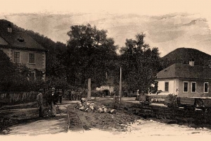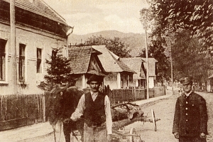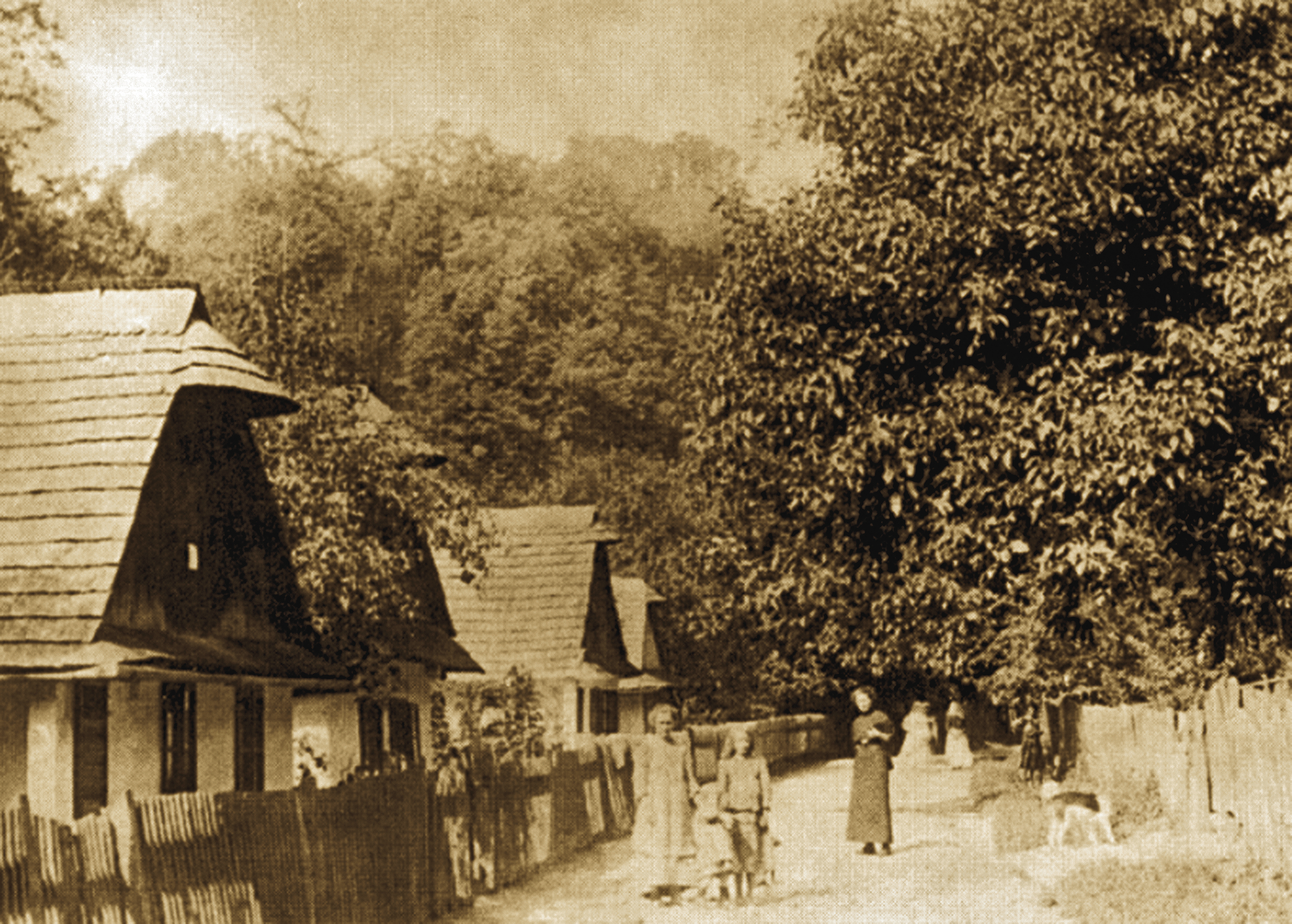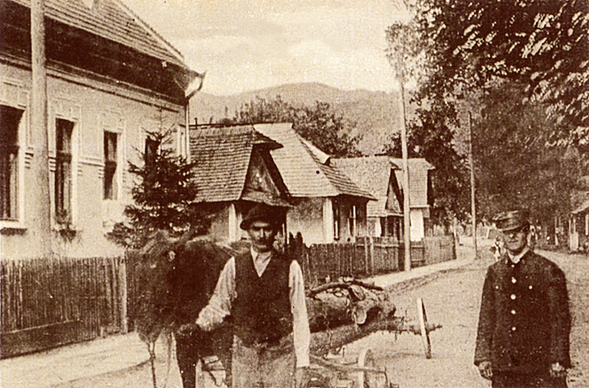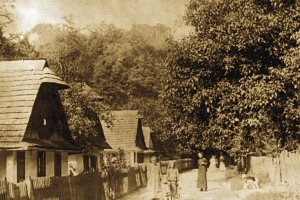 7 Valea Rosie anii 1930 = Baia Mare, Cartierul «Valea Roșie» (zona mediană), Locuitori și case tradiționale, anii deceniului 1930, fotograf necunoscut, prelucrare digitalizată, colecție privată, Baia Mare.