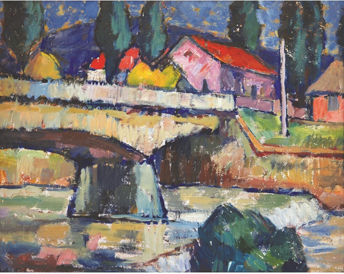 Nicolae CHIRILOVICI, Peisaj de pe valea Săsarului spre Podul Viilor, (circa anii deceniului 1930), colecțiile Muzeului Județean de Artă «Centrul Artistic Baia Mare» (donația familiei artistului, colecție privată, Arad)