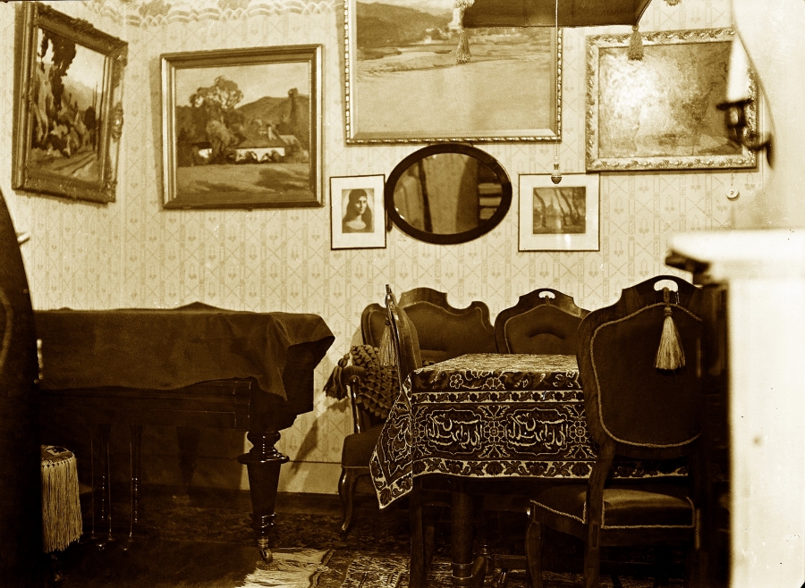 Ilustrația 1: lucrări de Károly FERENCZY și Valer FERENCZY în colecția de familie, Baia Mare, anii deceniului 1920, în fosta locuință Ferenczy de pe strada Petöfi, fotograf necunoscut, prelucare digitalizată, colecție priată, Baia Mare