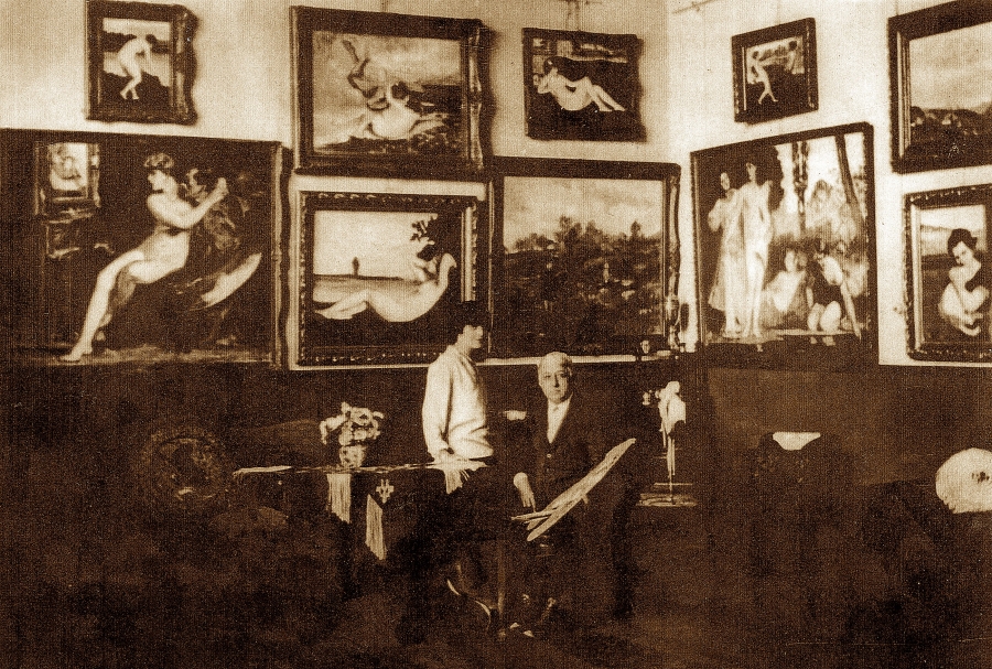 Ilustrația 3: colecția de lucrări proprii a lui János Thorma, Baia Mare, 1932, în atelierul artistului din Colonia Pictorilor, fotograf necunoscut, prelucare digitalizată, colecție priată, Baia Mare