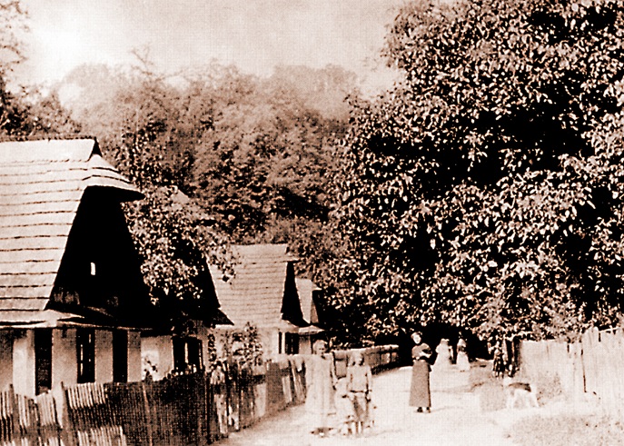 Ilustrația 3: Baia Mare, periferie băimăreană «urban–rurală» – cvartalul VALEA ROȘIE / cartierul pictorilor, anii deceniului 1900, fotograf necunoscut, prelucare digitalizată, colecție privată, Baia Mare