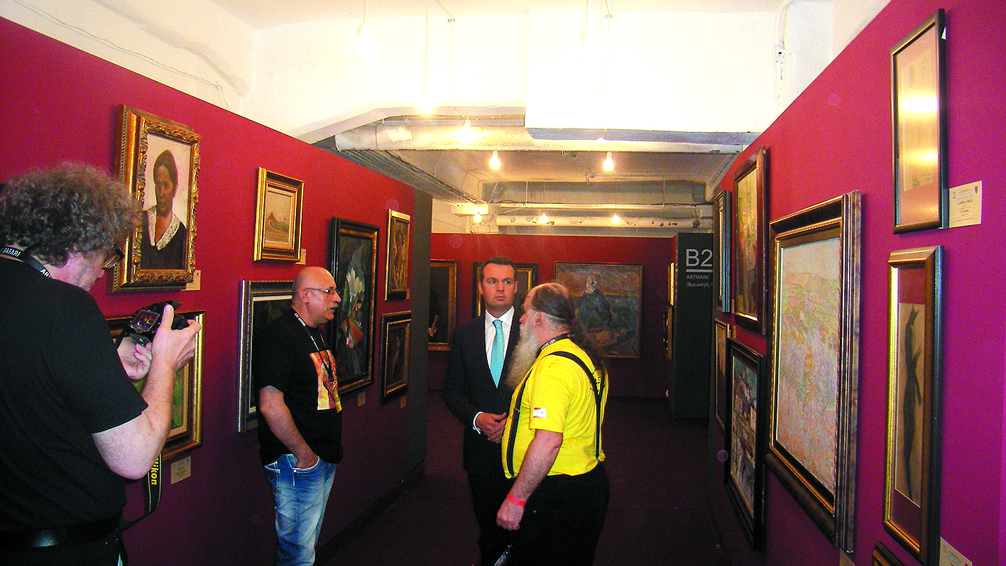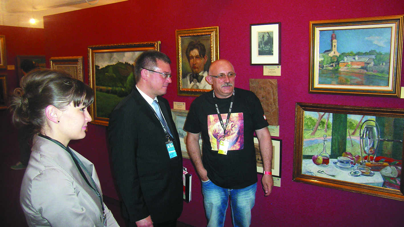 29 București 2015 – Art Safari 13: Cătălin Cherecheș (Primarul municipiului Baia Mare) în vizită la standul expozițional «Centrul Artistic Baia Mare –Avangarda interbelică» (ghizi: dr. T. Alexa, dr. Ioam Angel Negrean, dr. Dorel Topan)