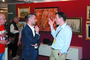 28 București 2015 – Art Safari 12: Gabriel Valer Zetea (Consiliul Județean Maramureș) în dialog cu Alexandru Bâldea (CEO Artmark București – organizator al Art Safari) la standul expozițional «Centrul Artistic Baia Mare –Avangarda interbelică»