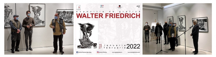 8 O selecție de 12 lucrări (8 gravuri și 4 desene în culoare), realizate în anii deceniului 1980, au prezentat creația lui Friedrich Walter sub forma unei microexpoziții personale. Cf. Tiberiu Alexa, Centrul Artistic Baia Mare. Un deceniu de viață artistică la Baia Mare.1984-1993. Antologie de cronici, eseuri și studii – Catalogul expozițiilor oficiale organizate de Filiala Baia Mare a Uniunii Artiștilor Plastici din România, Inspectoratul pentru Cultură al Județului Maramureș, Baia Mare, 1993, p. 64.