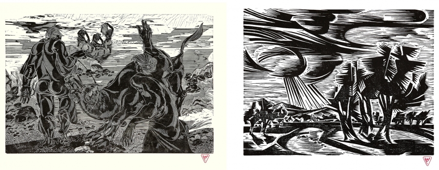 Ilustrația 5. Fotomontaj 6: • La râu, 1981, linograură pe hârtie, 53 x 70 cm. • După furtună, 1977, linograură pe hârtie, 54 x 40 cm.
