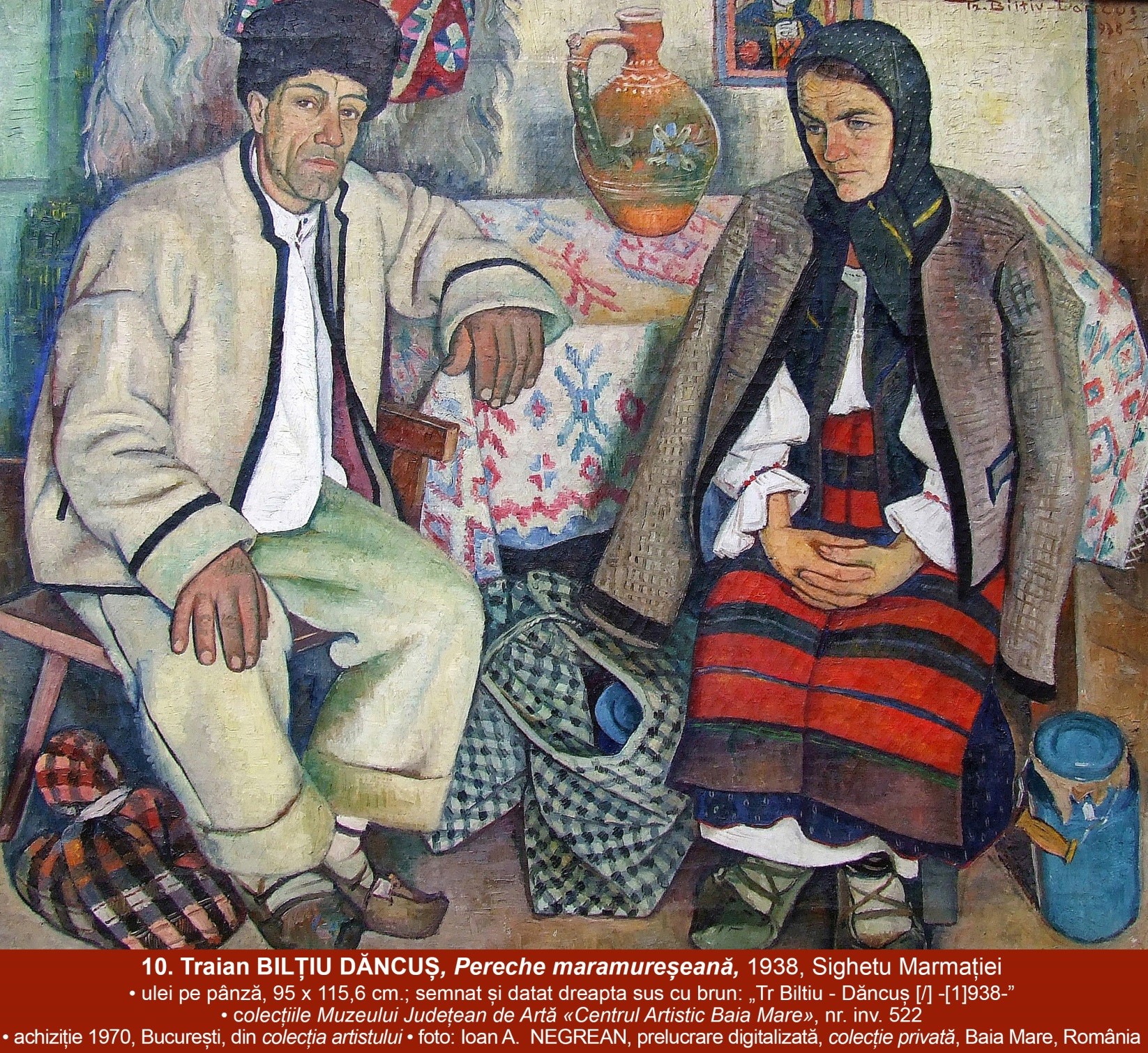„Traian Bilțiu Dăncuș (1899-1974), în Pereche maramureșeană (…) prezintă, cu un pronunțat simț al realității, bărbatul și femeia unei familii de maramureșeni.