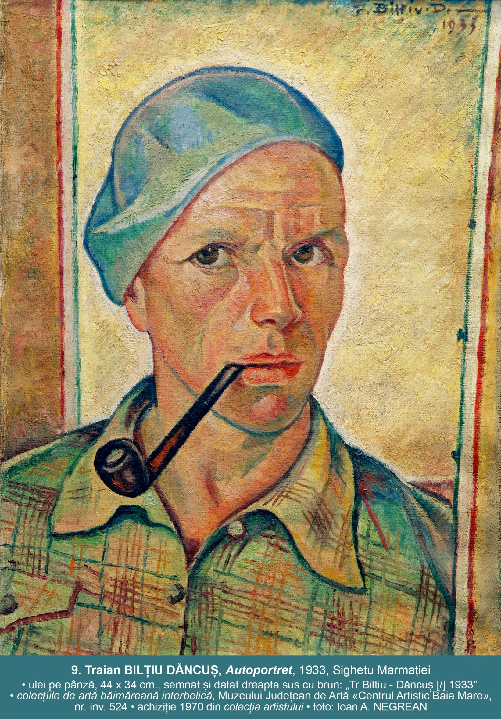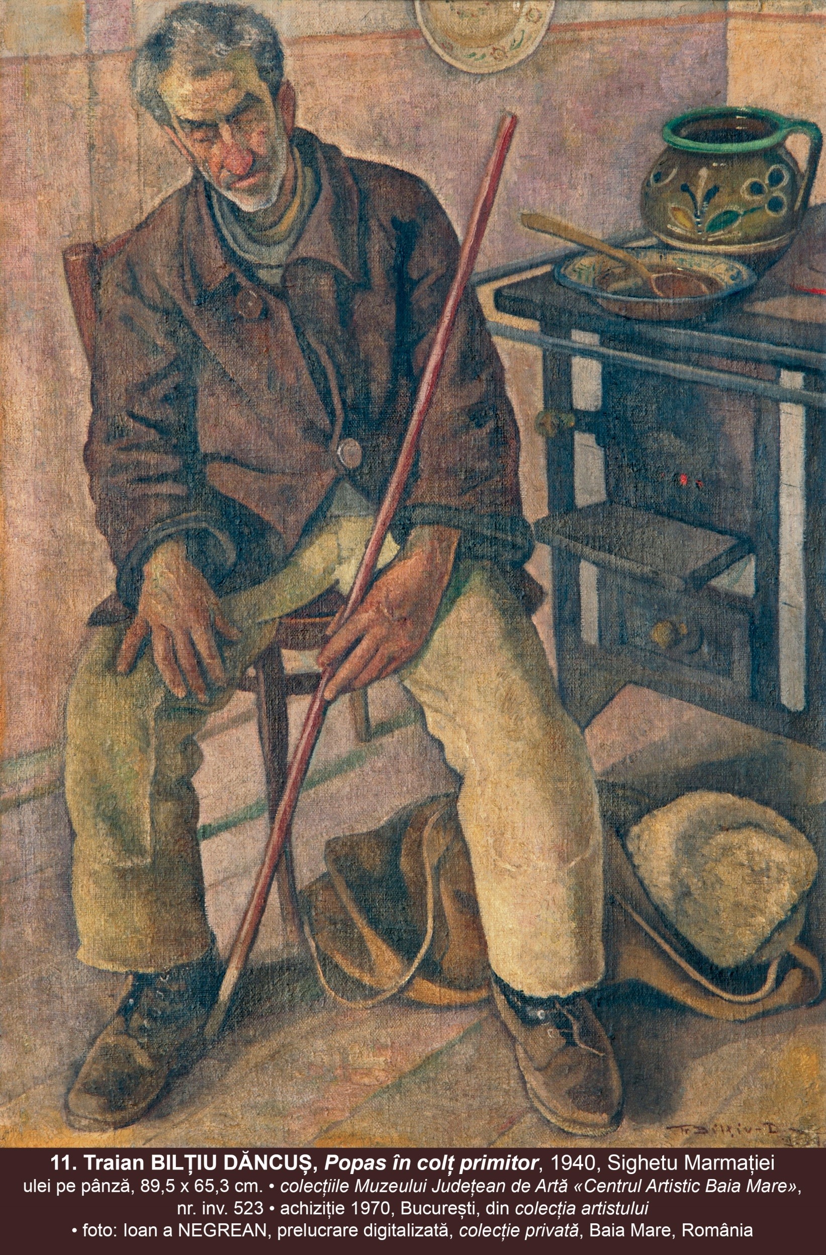 11. POPAS ÎN COLȚ PRIMITOR, 1940, Sighetu Marmației, ulei pe pânză, 89,5 x 65,3 cm. semnat şi datat dreapta jos cu brun: „Tr Biltiu – Dăncus [/][19]33”; pictură băimăreană interbelică, inv. nr. 523; proveniența: achiziție a muzeului în 13 aprilie 1970 din colecția artistului aflat, atunci, la București.