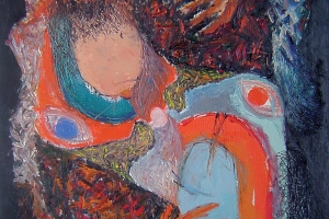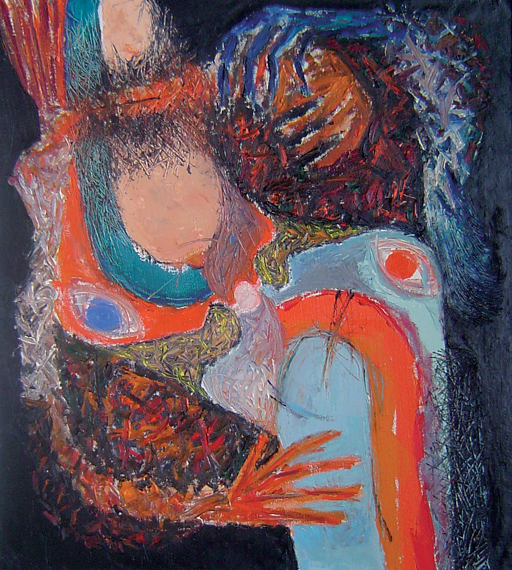 10 Sărutul – Cuib 89 = Sărutul – Cuib, 1989, ulei pe pânză, 78 x 70 cm., nesemnat, nedatat colecție artistului / © Ioan Angel Negrean.