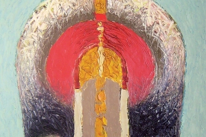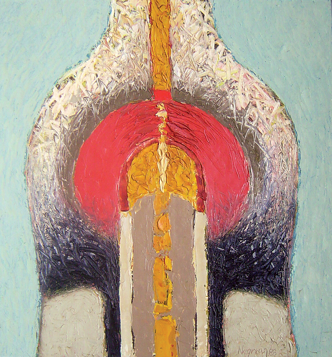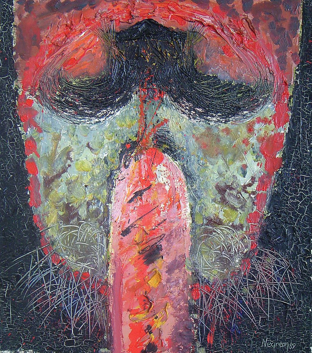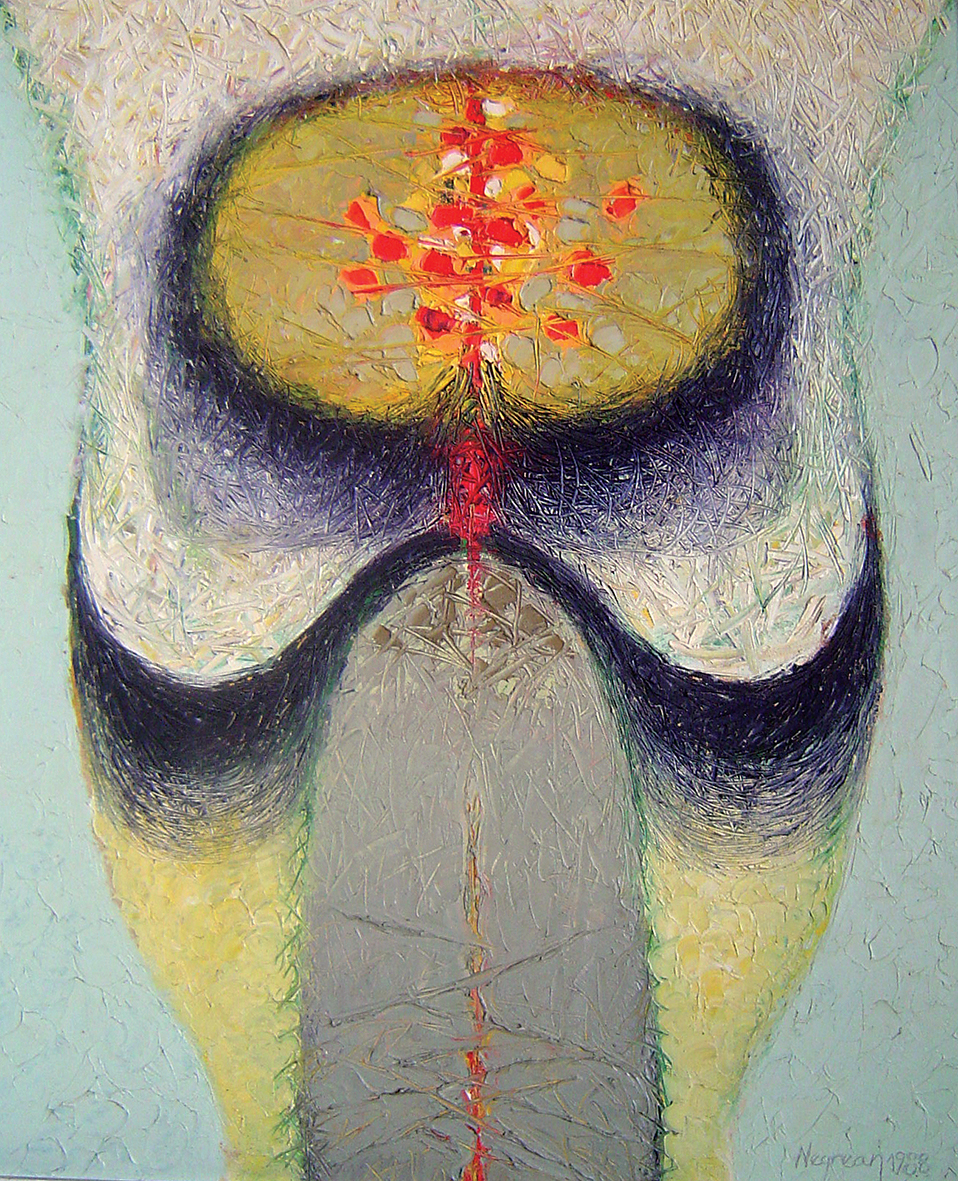 5 Cuibul vietii 88 = Cuibul vieții, 1988, ulei pe pânză, 121 x 89 cm., semnat și datat dreapta jos în pastă: „Negrean (19)88”, colecție artistului / © Ioan Angel Negrean.