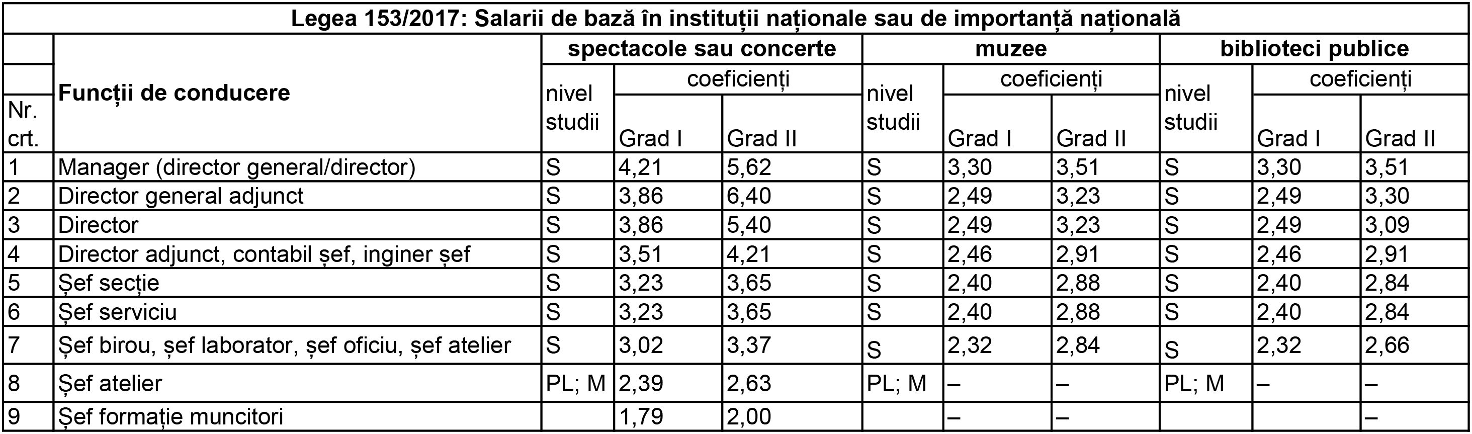 foto 2 = Legea 153/2017: Salarii de bază în instituții naționale sau de importanță națională – Funcții de conducere.