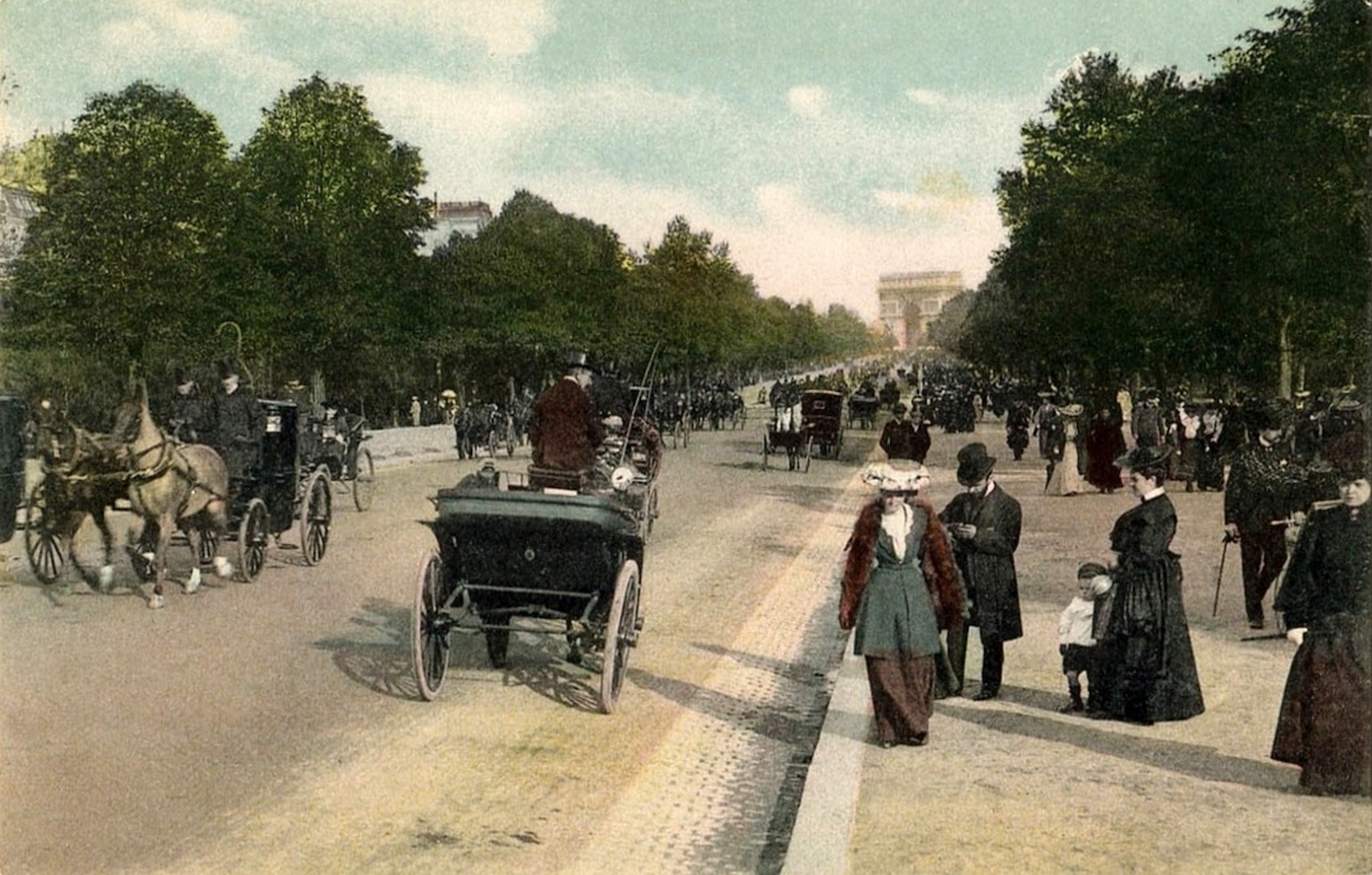 Ilustrația 3: Paris (Franța), Promenadă în Bois de Boulogne • fotograf necunoscut, carte poștală de epocă, cca. 1894 • fotochromolitografie tipografică pe carton, cca 11 x 15 cm. • colecție privată, Baia Mare, prelucrare digitalizată