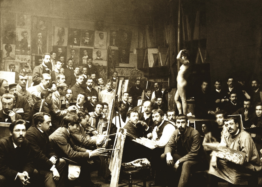 Ilustrația4: Paris (Franța), Studenți ai Academie Julian • fotograf necunoscut, gelatină argentică pe hârtie lipită pe carton, cca. 112 x 137 cm., anii deceniului 1890 (1892 ?) • colecție privată, Paris, prelucrare digitalizată
