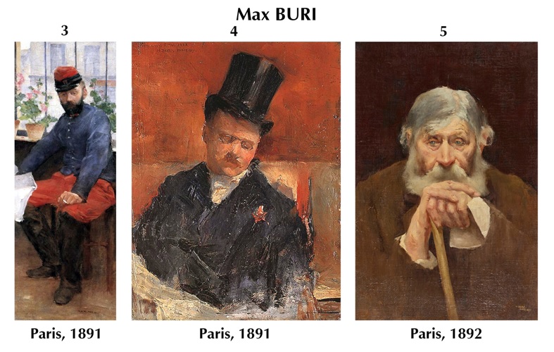 - dreapta: 5. Bătrânul, 1892, ulei pe pânză, 60,5 x 40 cm.; semnat, localizat și datat dreapta jos cu ocru: „M[ax]. Buri Paris1892”;colecție privată, Elveția.