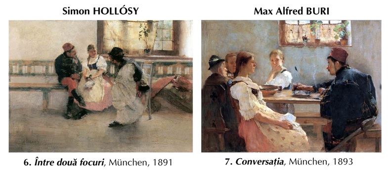 dreapta: 7. Max Alfred Buri, Conversația, 1893, München: ulei pe panel, 74 x 54,5 cm.; semnat și datat dreapta jos în majuscule cu roz: „MAX BURI 1893”, colecție privată, Elveția.