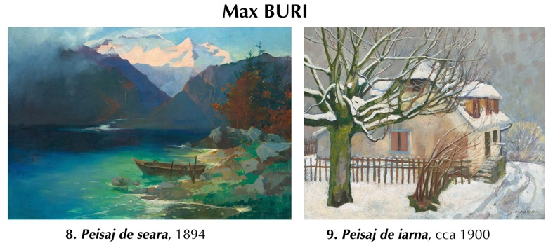 dreapta: 9. Max Buri, Peisaj de iarnă,(între 1898-1901): ulei pe pânză, 33 x 41 cm.; semnat dreapta jos în majuscule cu brun verzui: „MAX BURI”, colecție privată, Elveția.