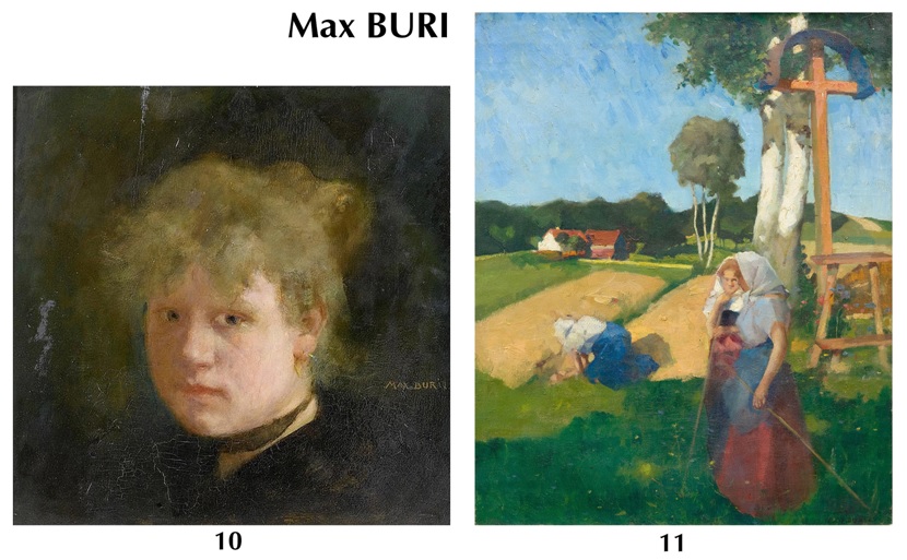 dreapta: 11. Max Alfred Buri, La muncile câmpului, 1893,[probabil între 1895-1900, Langnau im Emmental ?]: ulei pe pânză, 61,5 x 49 cm.; semnat dreapta jos în majuscule cu negru: „MAX BURI”, colecție privată, Elveția.
