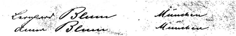 Le regăsim apoi într-o versiune a scrisorii purtând aceeaşi datare (7 februarie), care se află la MNG, Adattár şi conţine în plus o listă cu semnăturile autografe şi localitățile de reședință ale coloniştilor Şcolii Hollósy din 1900 (vezi mai jos, fragmentul de faximil cu semnăturile celor doi Blum)