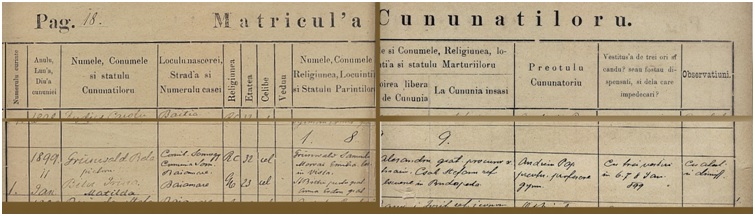 Din relatarea de presă care consemnează detaliile evenimentului mai reţinem că, după masa festivă desfăşurată la locuinţa protopopului Ştefan Bilţ, tânăra pereche a pornit în călătoria de nuntă spre Budapesta, fiind însoţită până la Satu Mare de „veselul alai al rudelor şi cunoştinţelor din cercul de prieteni”. După o şedere de zece zile în capitala ungară, soţii Grünwald urmau să plece la München pentru a petrece acolo sezonul de iarnă (cf. NaVi, XXV, 1899, nr. 3).