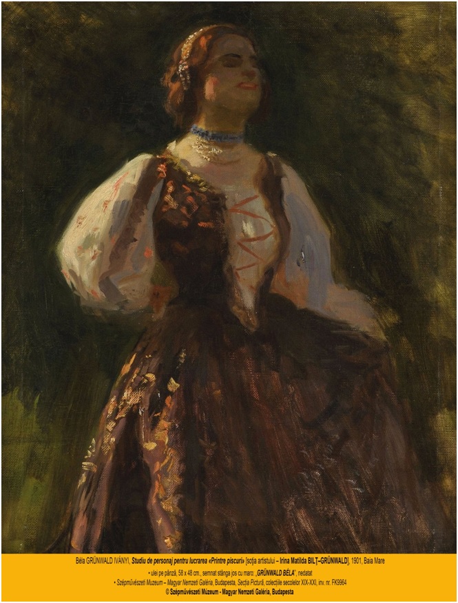 Pe de altă parte, Béla I. Grünwald a folosit-o ca model pentru mai multe peisaje compoziţionale şi i-a făcut câteva portrete, dintre care se distinge „Tânăra” –portret bust în mărime naturală, pictat într-o interesantă manieră secesionistă (aflat de asemenea la Galeria Naţională Maghiară).