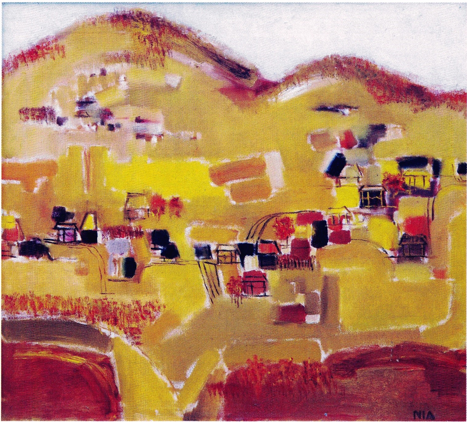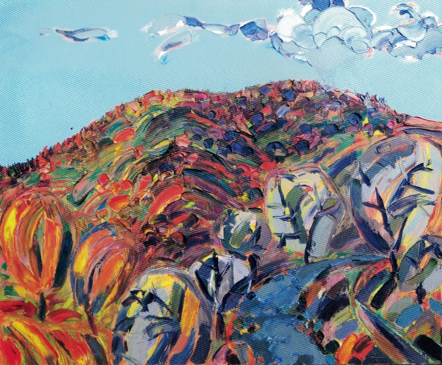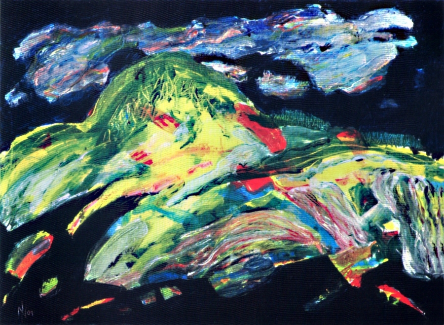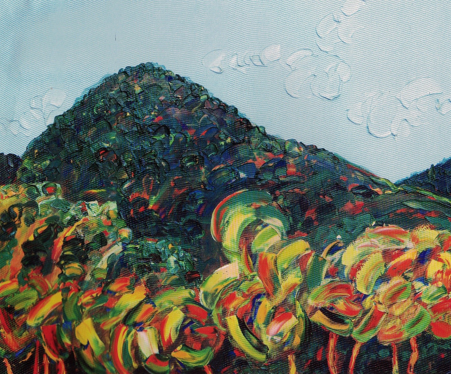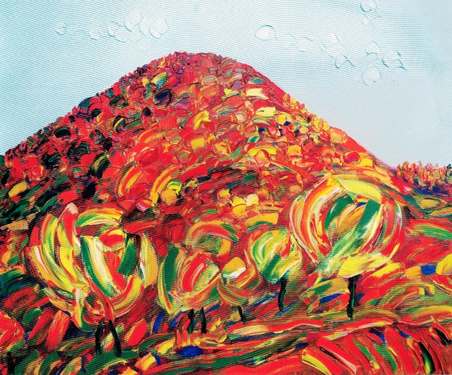 proiectează într-un câmp plastic puternic contrastat şi energic (invocând soluţii cromatice expresioniste) motivul central al corporalităţii unui deal generic, care invocă, insinuant, înfăţişarea Dealului Crucii, însă în nici un fel nu se identifică/confundă vizual cu acesta. Din perspectiva celor 12 ani care au urmat, acest peisaj de invenţie s-a dovedit a fi capul de serie al unor dezvoltări problematizante.