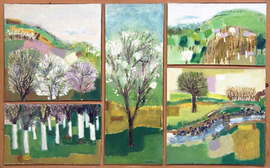 din seriile tematice Amintiri despre un deal băimărean și, respectiv Anotimpurile • ulei pe pânză, 100 x 120 cm.