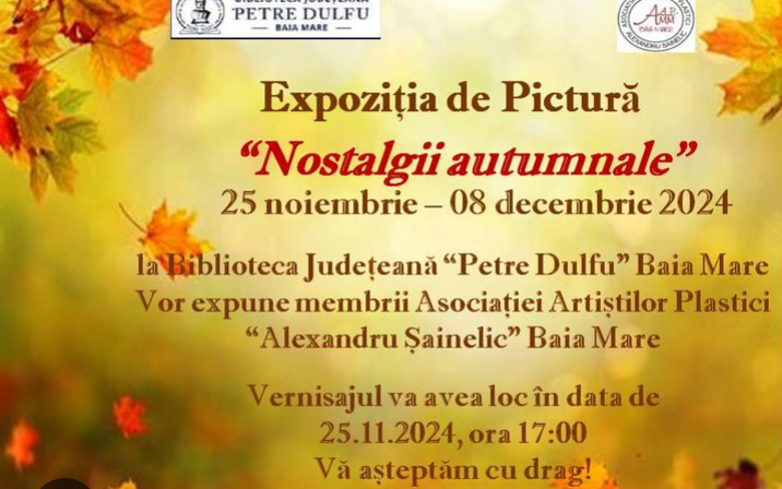 Luni, 25 noiembrie, ora 17.00, în Salonul Artelor al Bibliotecii Județene „Petre Dulfu, Asociația Artiștilor Plastici „Alexandru Șainelic” în colaborare cu Biblioteca Județeană „Petre Dulfu” va organiza