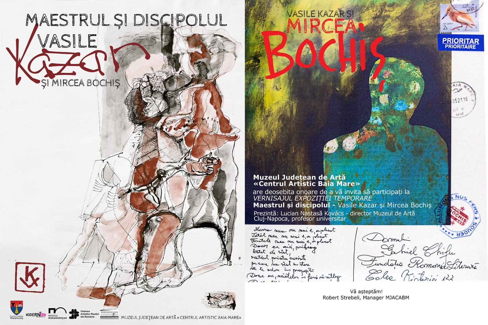 Muzeul Județean de Artă «Centrul Artistic Baia Mare» anunță deschiderea expoziției „Maestrul și discipolul. Vasile Kazar și Mircea Bochiș”, care va fi vernisată joi, 16 octombrie, ora 17:00. Curatorul expoziției este Robert Strebeli, iar prezentarea va fi susținută de Lucian Nastasă-Kovács, director al Muzeului de Artă Cluj-Napoca și profesor universitar.
