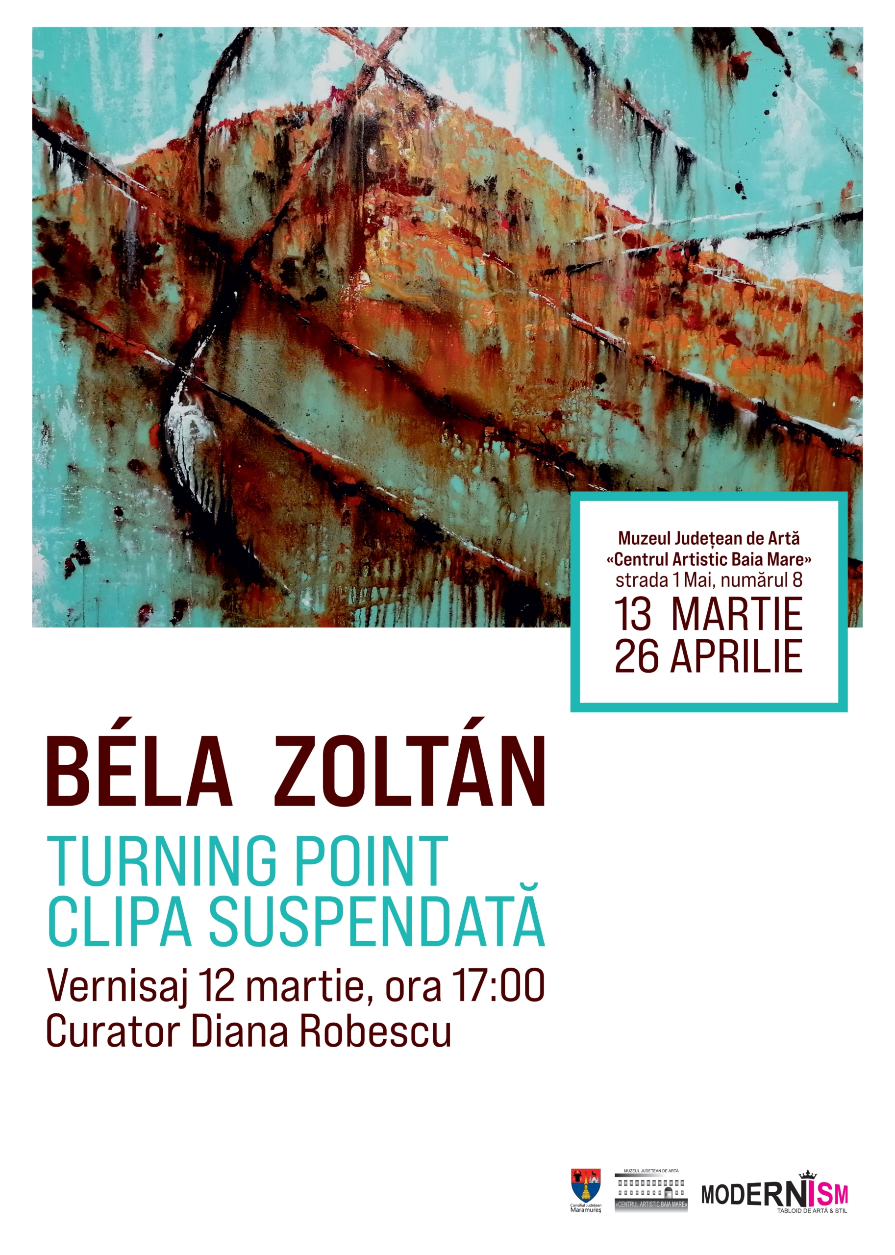 Muzeul Județean de Artă «Centrul Artistic Baia Mare» găzduiește, începând cu 12 martie, expoziția personală a artistului Béla Zoltán, intitulată „Turning Point – Clipa suspendată”, un amplu parcurs retrospectiv ce marchează 30 de ani de creație artistică (1996–2026). Vernisajul va avea loc de la ora 17.00.