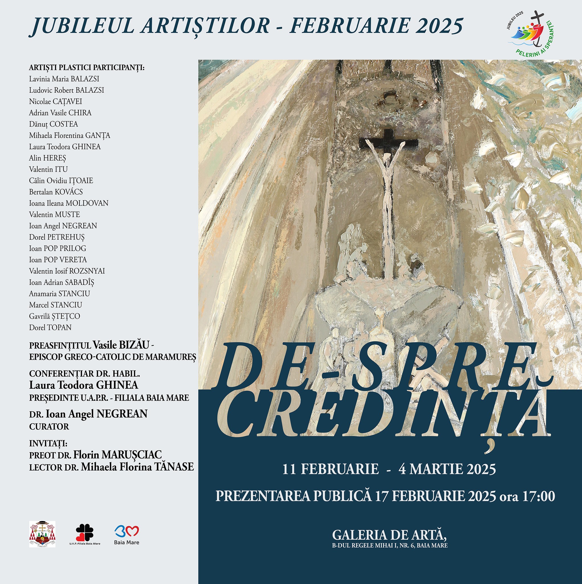 Iubitorii artei sunt invitați la prezentarea publică a expoziției „DE-SPRE CREDINȚĂ”, care va avea loc la Galeria de Artă U.A.P. Baia Mare luni, 17 februarie, ora 17:00.