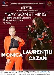 Joi, 28 noiembrie, ora 19.00,la Teatrul Municipal Baia Mare va avea loc concertul extraordinar ,,SAY SOMETHING”, al cărui protagonist va fi cântărețul Laurențiu Cazan. Alături de el, va urca pe scenă tânăra solistă de muzică ușoară și jazz, Monica.