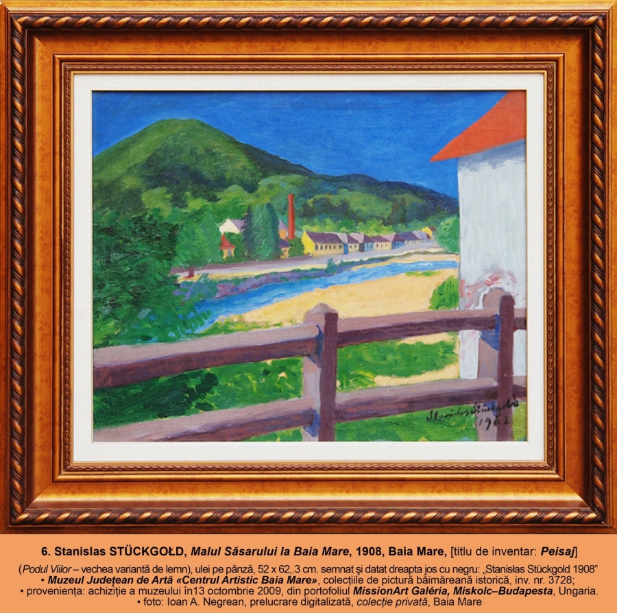 - Malul Săsarului la Baia Mare, 1908 , Baia Mare, [titlu de inventar: Peisaj] Podul Viilor – vechea variantă de lemn, ulei pe pânză, 52 x 62,.3 cm. semnat şi datat dreapta jos cu negru: „Stanisłas Stückgold 1908” • Muzeul Județean de Artă «Centrul Artistic Baia Mare», colecțiile de pictură băimăreană istorică, inv. nr. 3728; proveniența: achiziție a muzeului în13 octombrie 2009 din portofoliul MissionArt Galéria, Miskolc–Budapesta, Ungaria.