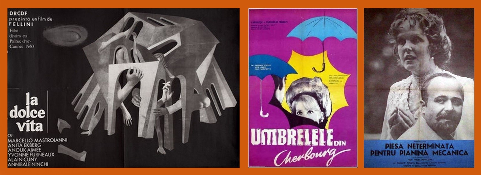 Confruntați să-și exprime, argumentativ, posibile opțiuni/preferințe personale alternative pe care le-ar alege din aria „culturii de performanță” (high culture), la următoarea seminarizare (concluzivă) câțiva dintre studenți au adus exemplificări interesante, centrate asupra aceluiași „apetit pentru poveste/experiențe narative” – dintre care mi-au rămas în amintire: La dolce vita (1960, regia Federico Fellini; cu Marcello Mastroiani și Anita Ekberg); Piesă neterminată pentru pianină mecanică (1977, regia Nikita Mihalkov; cu Aleksandr Kaliaghin și Elena Solovei) și Umbrelele din Cherbourg (1964, regia Jacques Demy; muzica Michel Legrand; cu Catherine Deneuve, Nino Castelnuovo și Anne Vernon) – din sfera produselor cinematografice (aveam printre studenți – vreo 4 și din Republica Moldova – câțiva cinefili autentici și „înrăiți” ce cotrobăiau deja intens pe internet, deși încă nu fusese inventat youtube-ul!);