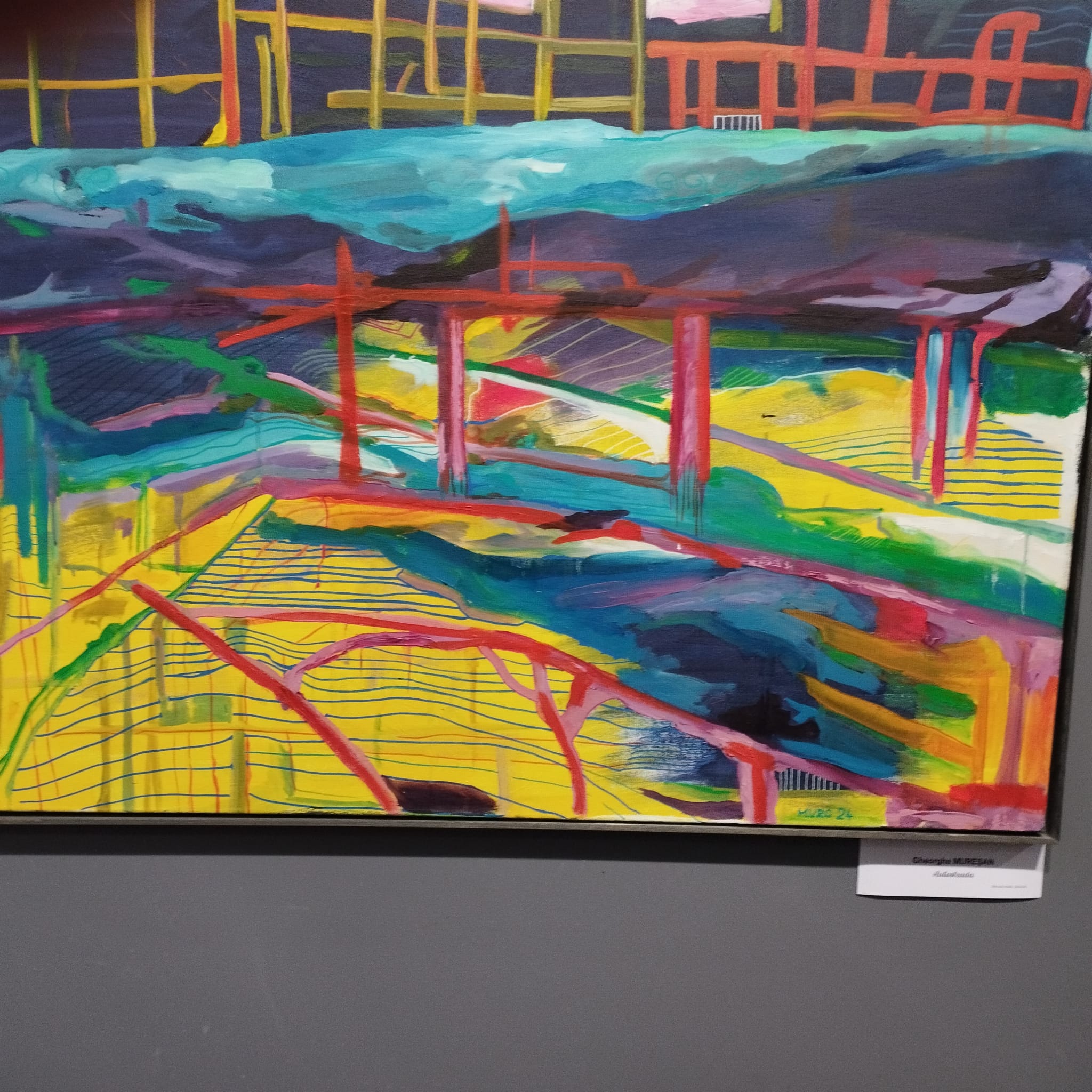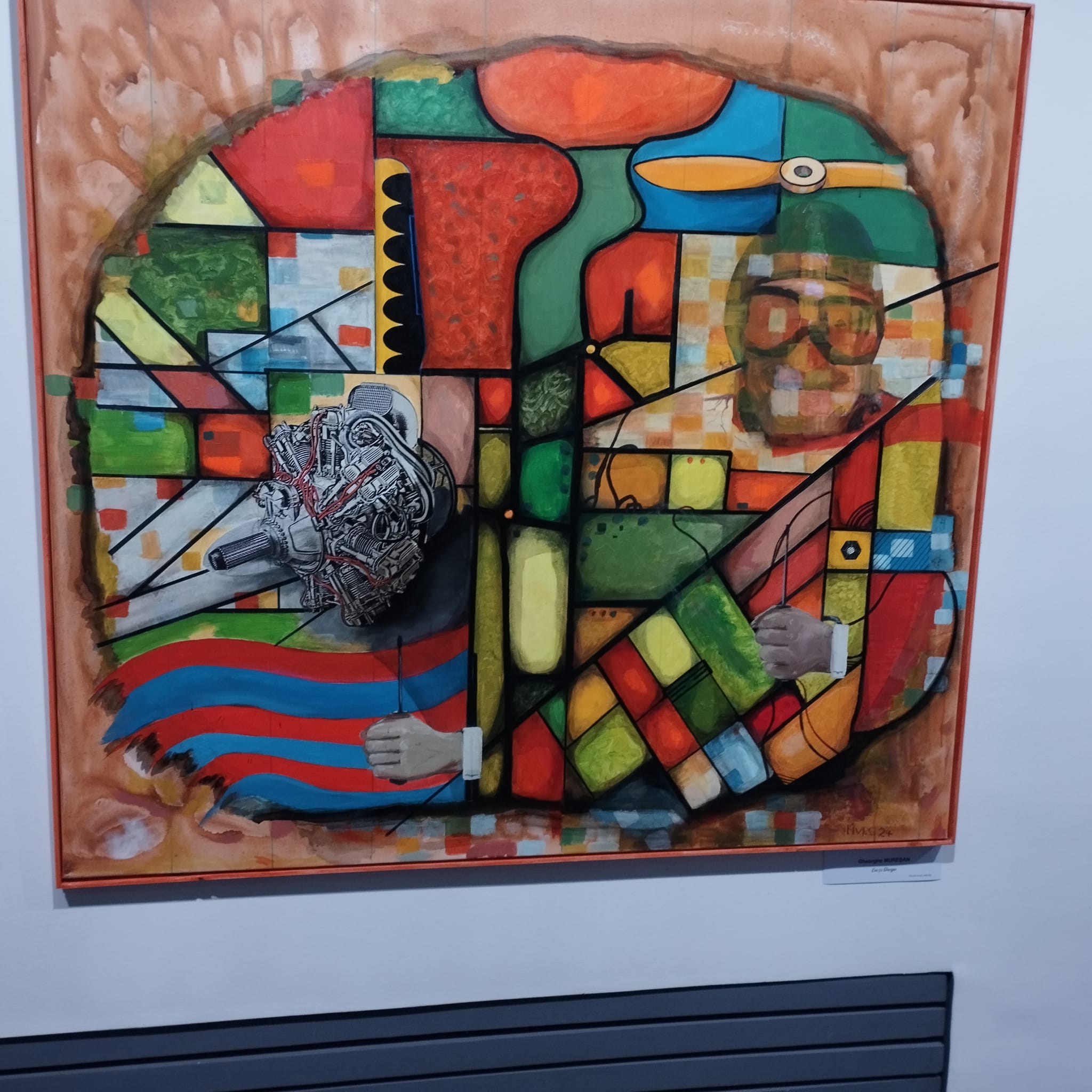 Pentru că omul poate vedea construcția picturala ca un “constructivism” care vrea într-un fel sau altul să ridice în slavi producția industriala de tipul Kazimir Malevici. Și astfel lucrurile pot să vireze spre o altă destinație, dar intenția lui Gheorghe Mureșan este de a da o nouă expresie ingineriei în toată ipostaza ei. Sau de a da posibilitatea tehnicii și ingineriei să se poată transpune trăirii artistice. Dar acest lucru nu este neapărat simplu, pentru că în primul rând pictorul Mureșan, am impresia că și-a propus o recalibrare a mentalității – zic eu – răspândite că o Cultură și o Artă valabilă se clădește pe Cultura umanistă, pe Arta care este confirmata deja de timp. Ori Gheorghe Mureșan se duce într-o direcție unde patternul, academismul dacă vreți, nu este la el acasă. Cotidianul, dar mai ales tehnicul este de mulți privit ca un orizont care nu este capabil să genereze “faptul” artistic. Iar trăirea artistică nu poate fi generată de o zonă unde ceea ce contează este “lucrul”, “obiectul”, nu natura sau poezia. Și aici pictorul are meritul că sfidează din start mentalități preconcepute. Gheorghe Mureșan sfidează cu buna știință și unele trucuri care vor să scoață în evidenta nu Arta ca atare, ci “nebunia” ideatică sau cromatică.