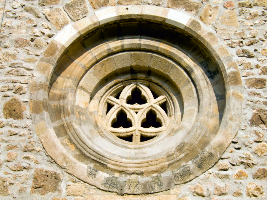 Elemente arhitecturale din vechea biserică gotică sunt vizibile pe latura de vest şi nord-vest. Peretele dinspre vest cuprinde şi un frumos detaliu de arhitectură medievală, respectiv fereastra rotundă (rozasă/rozetă) dar şi o casetă cu reprezentări în basorelief din vechiul sigiliu al oraşului.