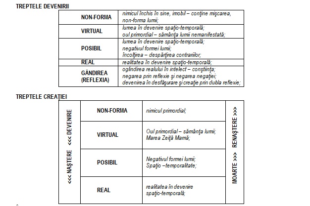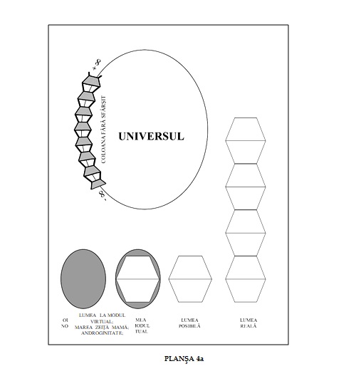 Coloana conţine posibilitatea Oului, iar Oul posibilitatea lumii care în dezvoltarea sa conţine posibilitatea gândului prin reflexibilitate, dedublare, oglindire şi dublă negaţie. S-ar putea spune că înaintea realităţii formelor, a realităţii spaţio-temporare a lor, există „posibilitatea” acestor forme conţinută în “Unul”, în “Ou”. (Infinitul este mai aproape de „Unul” decât de devenirea sa. Planşa 4a).