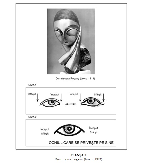 Ochii “Domnişoarei Pogany” nu văd, ci se fac văzuţi; aceşti ochi larg deschişi ne duc la ceva foarte apropiat. Acesta este paradoxul ochiului care se priveşte pe el însuşi (Planşa 3).