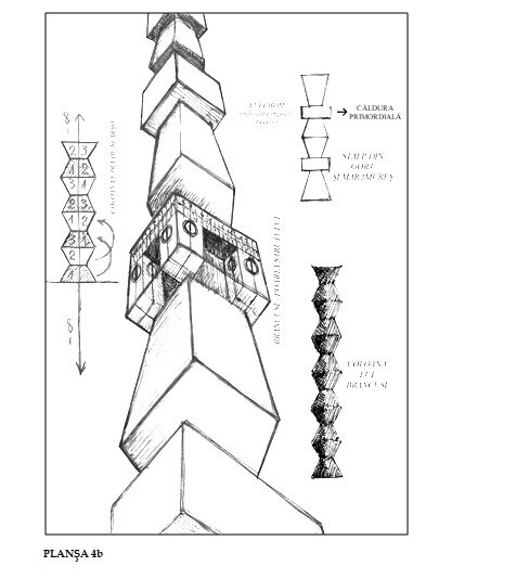 Astfel, „Coloana” vine din mit, din preistorie, şi se întoarce la mit ca o curbă luminoasă care ne face să coborâm şi să urcăm încă o dată în mit prin necesitatea primordială a gândirii umane. Simbolul coloanei este acela al Turnului Babel (o divinitate unică împotriva gândirii limbii unice), acela al reunificării drumului către aceeaşi formă de cunoaştere şi de creaţie (vezi Planşa 4a).