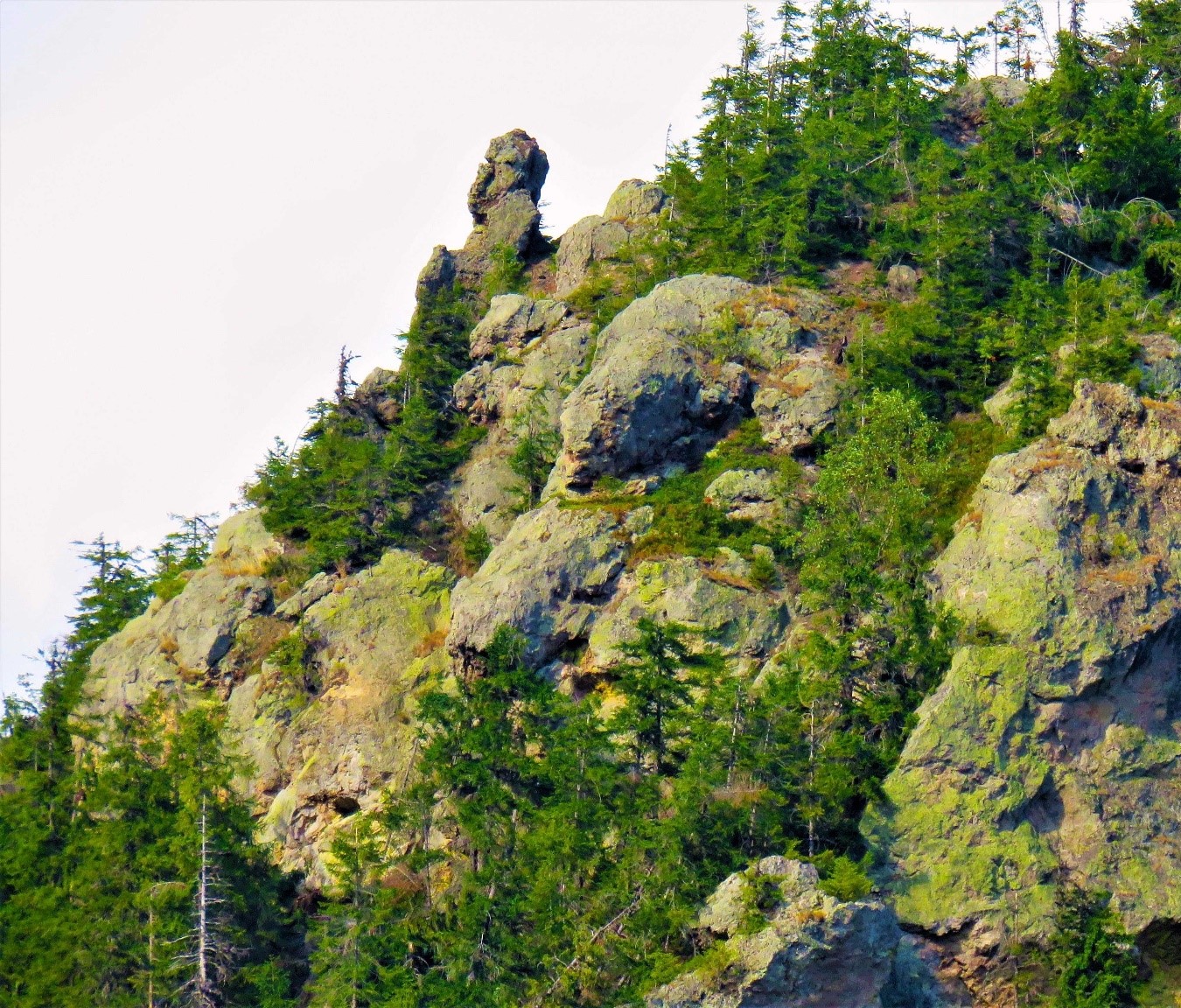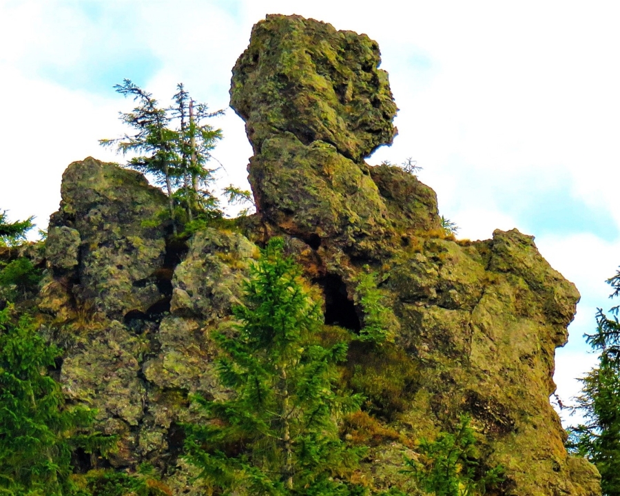 Un colț mare de stâncă iese în evidență datorită formei sale antropomorfice care aduce cu forma capului unui bătrân.