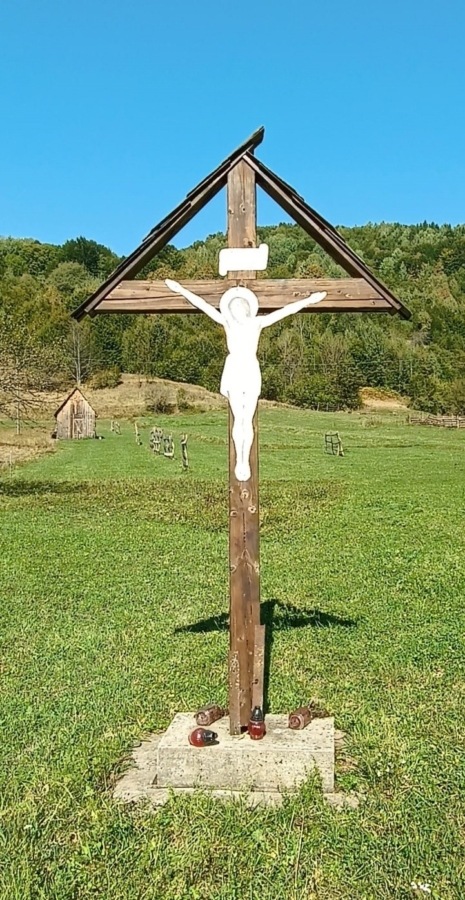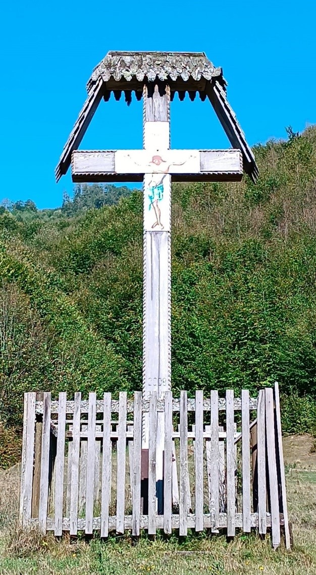 Răstignirea de la mijlocul satului la intrarea spre Biserica de lemn monument istoric