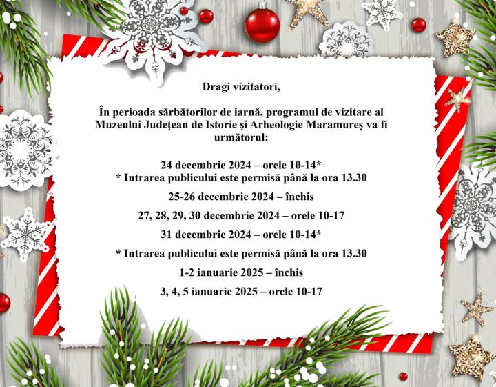 Programul de vizitare al Muzeului de Istorie și Arheologie Maramureș, în perioada sărbătorilor de iarnă