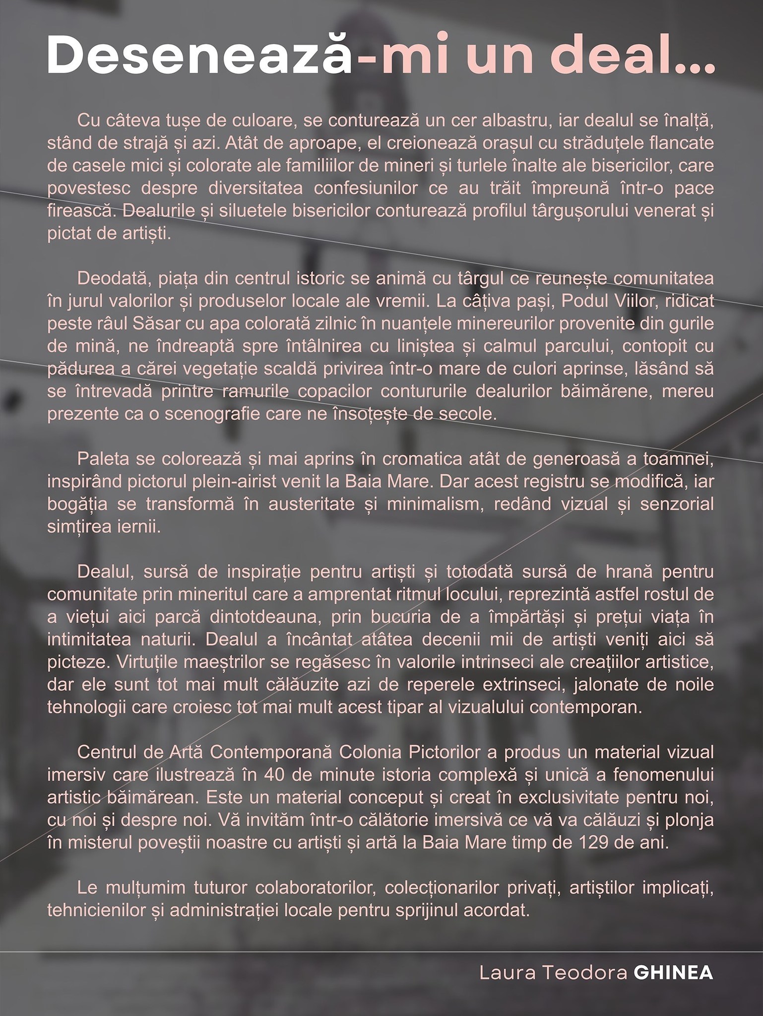 Proiecția imersivă „Desenează-mi un deal” – care ilustrează povestea artei vizuale băimărene – va fi lansată la Colonia Pictorilor