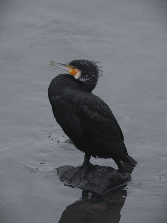Pe lângă rațe, în această iarnă au atras atenția și câteva exemplare de cormoran mare, o pasăre bine cunoscută pentru abilitatea sa de a vâna pești.