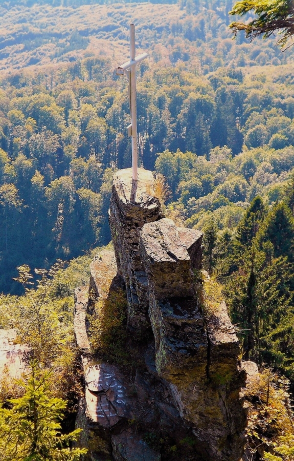 Piatra Prislopului cu crucea montată pe vârful ei – Sursă foto Alexandru Rozenbaum