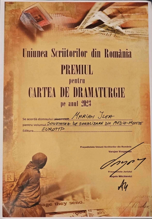 Scriitorul Marian Ilea se reîntoarce în Maramureș cu premiul la secțiunea dramaturgie, pentru volumul „Societatea de socializare din Medio Monte”, apărut la Editura Eurotip.